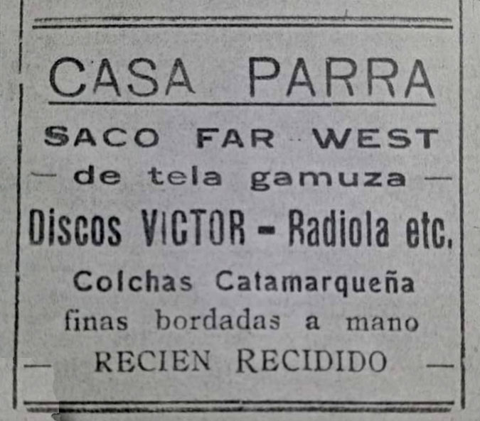 Publicidad en un diario de Casa Parra, la tienda que Demetrio y Anastasia