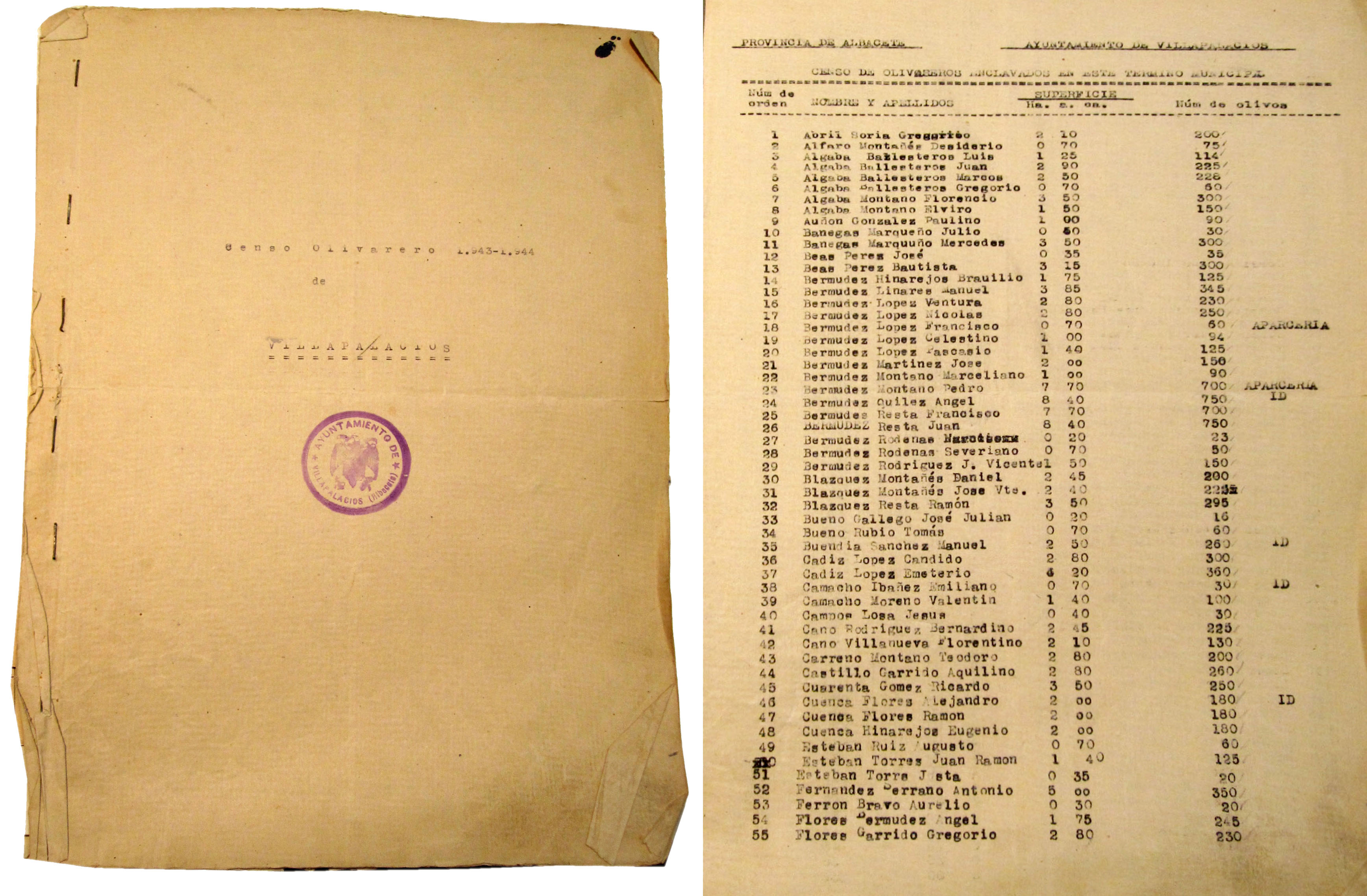 CENSO OLIVARERO DE VILLAPALACIOS DE 1944: